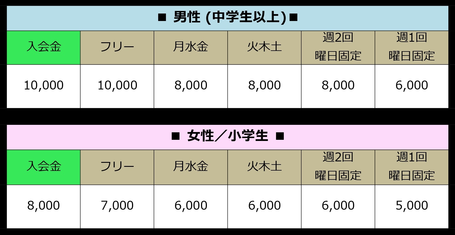 ● 各コース会費 ●